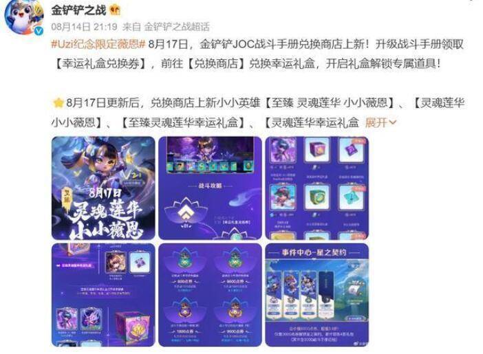 事情是这样的,最近云顶手游版《金铲铲之战》上线了一款Uzi联名限定的小小英雄薇恩,分为两个不同版本,一个普通灵魂莲华版本,另一个是至臻版本,这两个版本都标注了uzi 纪念限定款,还让Uzi拍摄了一个视频。